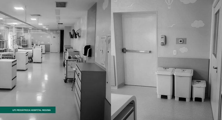 Reforma interna da nova Unidade de Terapia Intensiva Pediátrica do Hospital Regina. O projeto incluiu diversos ajustes na estrutura existente, com destaque para a instalação de paredes e forro em gesso acartonado, execução de banheiros revestidos com porcelanato, revitalização completa dos pisos, construção de uma estrutura metálica externa, além da aplicação de massa corrida e pintura em todo o ambiente, garantindo um espaço renovado e funcional.